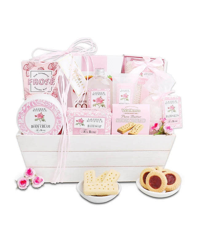 Exotic Rose Spa Gift Basket, Self Care Gift, Bath and Body Care Gift Set, Relaxing Stress Relief Gift, 13 Piece