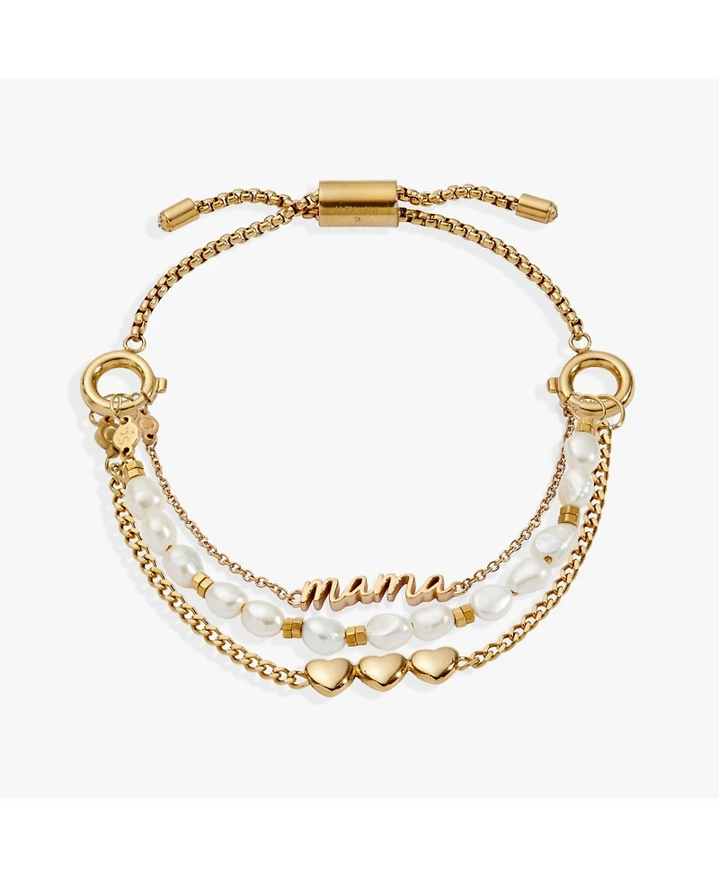 The Stranded Collection features an all-new, interchangeable design. Bracelet strands attach to an adjustable length keeper, included with the set. Swap out strands from different pieces and combine them to make a style that s all your own.This charming bracelet includes three strands: a ""mama"" nameplate strand, a pearl strand, and a fun dimensional heart strand, etched on the back with the phrase ""Home is where the heart is.""