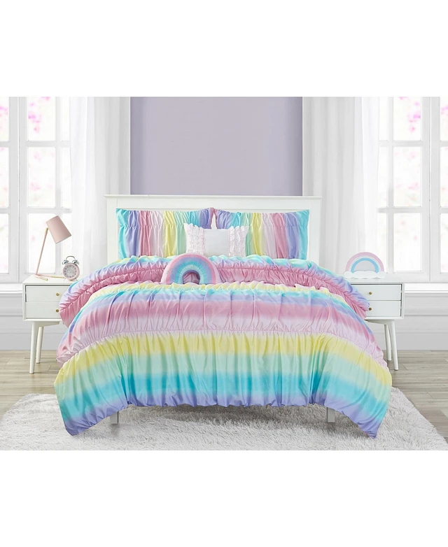 Alex + Bella Rainbow Ruched Pink 4-Piece Microfiber Comforter Set - Twin