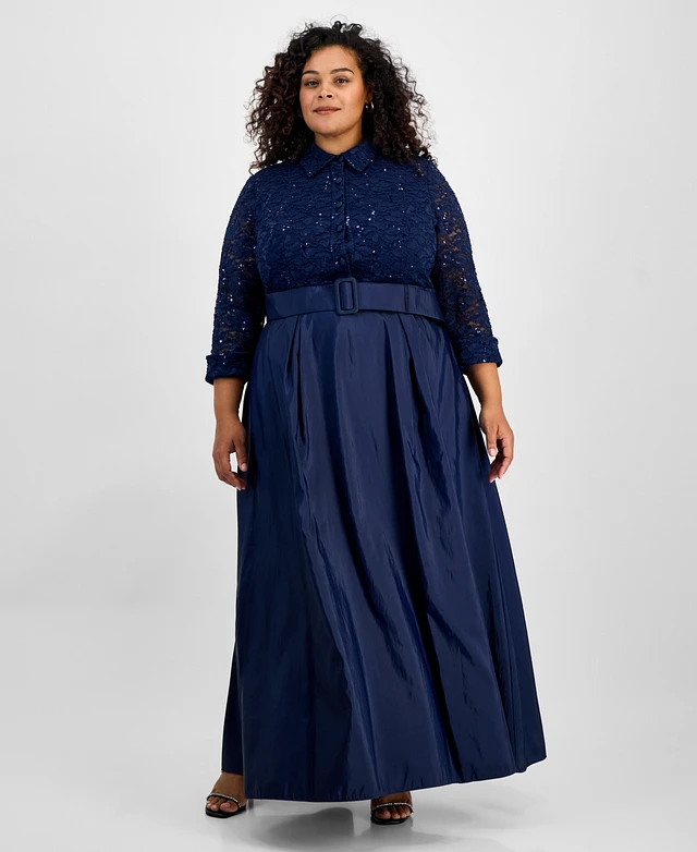 Alex Evenings Plus Sequined Scalloped Edge Lace Top Gown