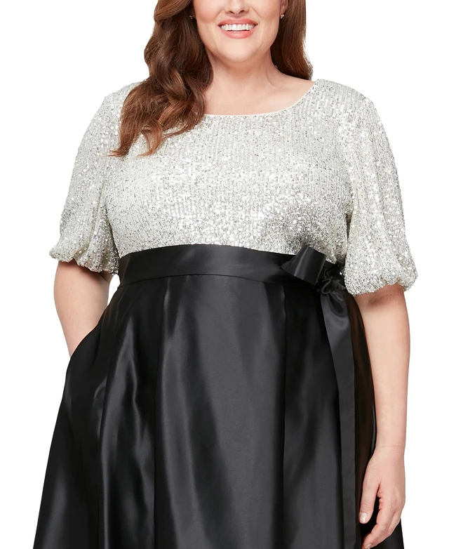 Alex Evenings Plus Sequin-Bodice Midi Dress