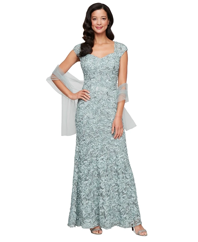 Alex Evenings Women's Sequin Embellished Lace Top Gown