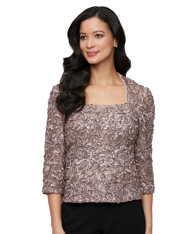 Alex Evenings Women's Soutache Lace 3/4-Sleeve Top