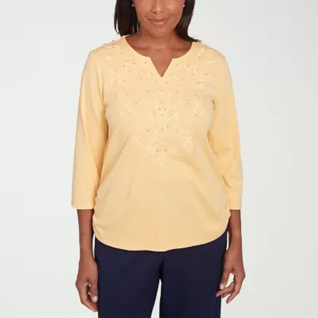 Alfred Dunner Hilton Head Womens Crew Neck 3/4 Sleeve T-Shirt