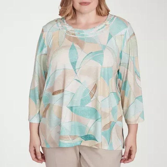 Alfred Dunner Kensington Garden Womens Round Neck 3/4 Sleeve Plus T-Shirt
