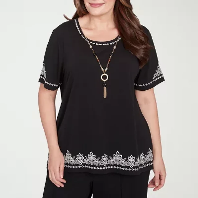 Alfred Dunner Natural Instinct Womens Plus Crew Neck Short Sleeve Stretch Fabric T-Shirt