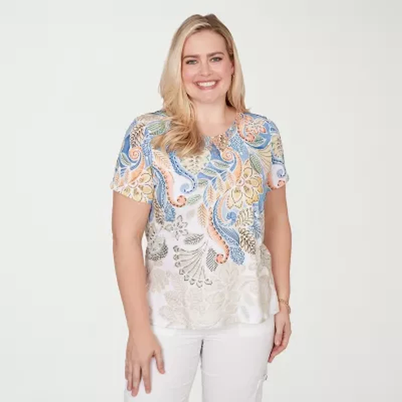 Alfred Dunner Out Of The Blue Womens Crew Neck Short Sleeve T-Shirt