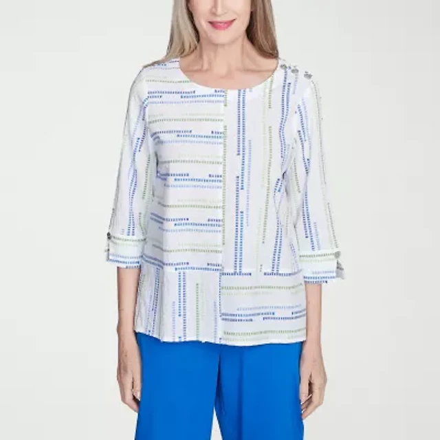 Alfred Dunner Parrot Cay Womens Crew Neck 3/4 Sleeve Blouse