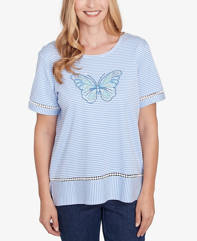 Alfred Dunner Petite Classics Striped Butterfly Short Sleeve T-Shirt