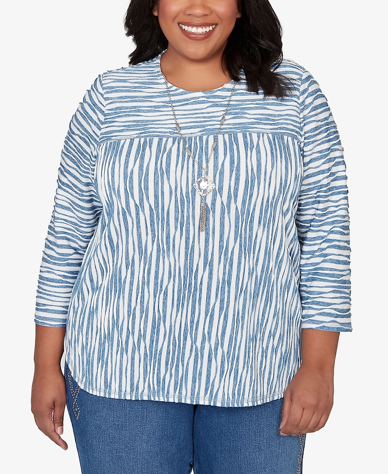 Alfred Dunner Plus Austin Novelty Spliced Textured Top with Necklace