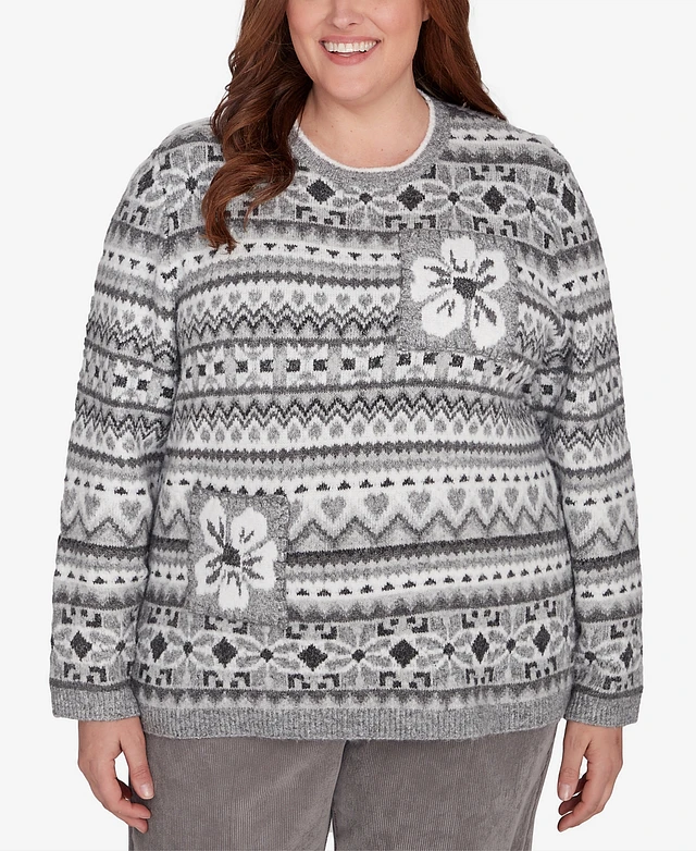 Alfred Dunner Plus Copenhagen Fair Isle Biadere Patch Sweater