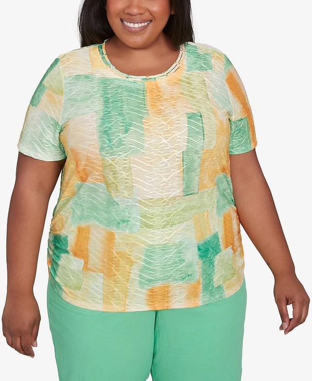 Alfred Dunner Plus Rise and Shine Textured Patch Short Sleeve Top