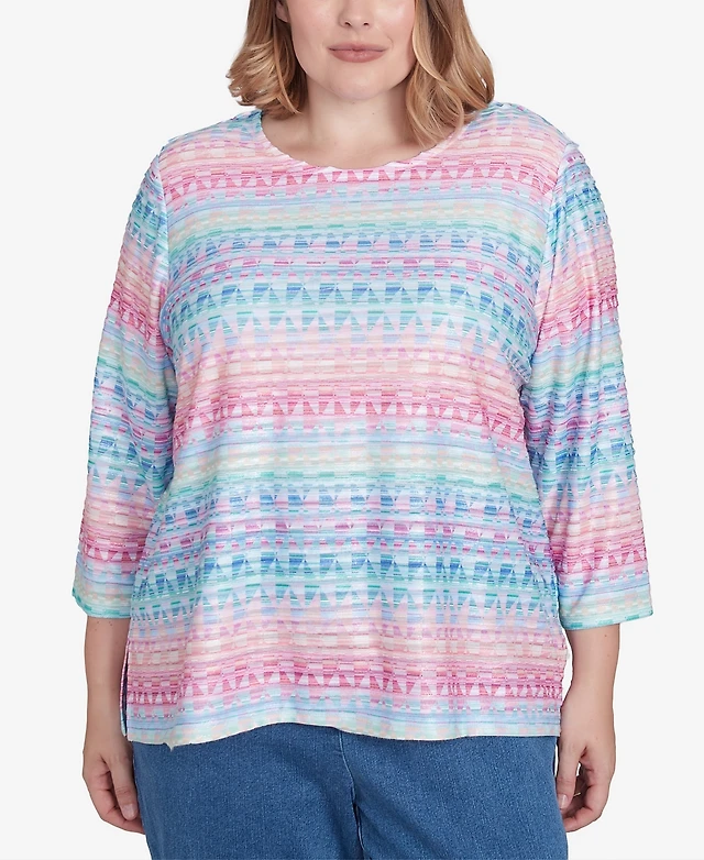 Alfred Dunner Plus Classic Puff Print Textured Chevron Crew Neck Top