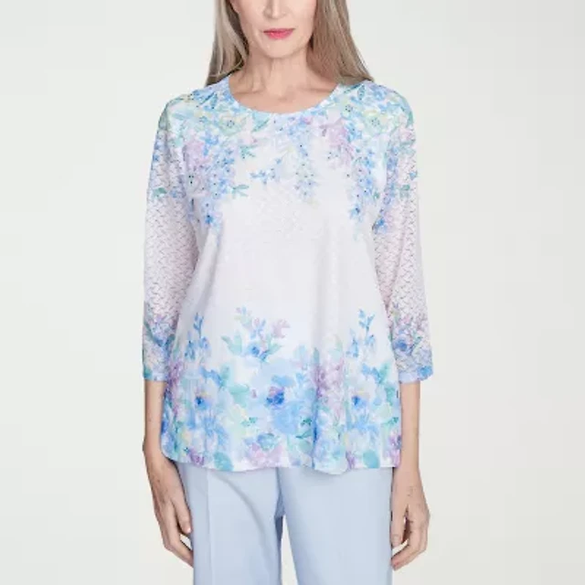 Alfred Dunner St Thomas Womens Crew Neck 3/4 Sleeve T-Shirt