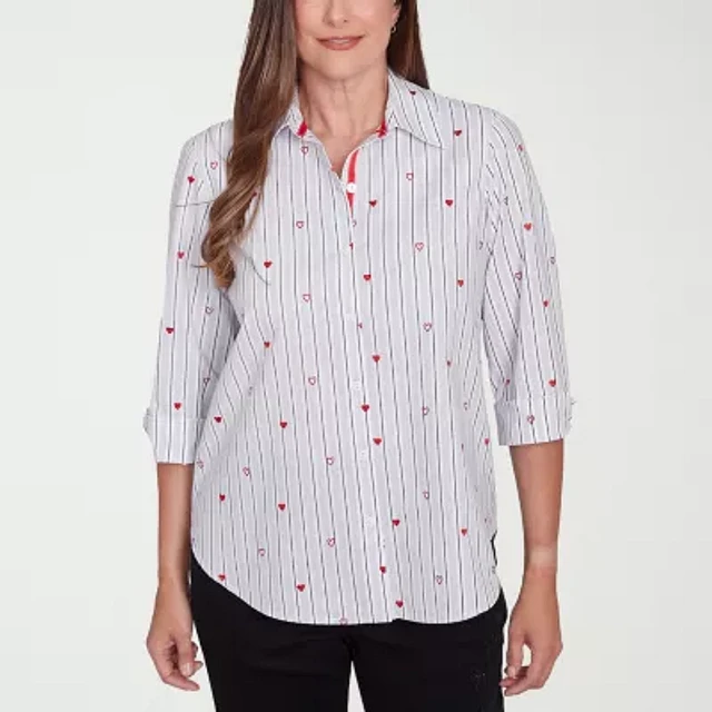 Alfred Dunner Wild At Heart Womens 3/4 Sleeve Button-Down Shirt