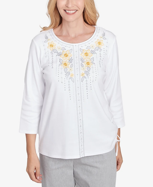 Alfred Dunner Women's Floral Leaf Embellished Top
