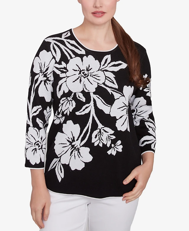 Alfred Dunner Women's Wild At Heart Dramatic Floral Crew Neck Top