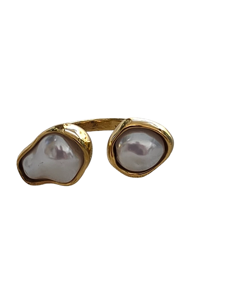 Elegant open ring crafted in 316 stainless steel, designed to fit up to size 7 with adjustable styling. Features lustrous pearls that catch the light beautifully. Hypoallergenic construction makes it ideal for sensitive skin, ensuring comfort throughout the day. The open band design offers a modern, versatile look that pairs effortlessly with any outfit. Perfect for everyday wear or special occasions.