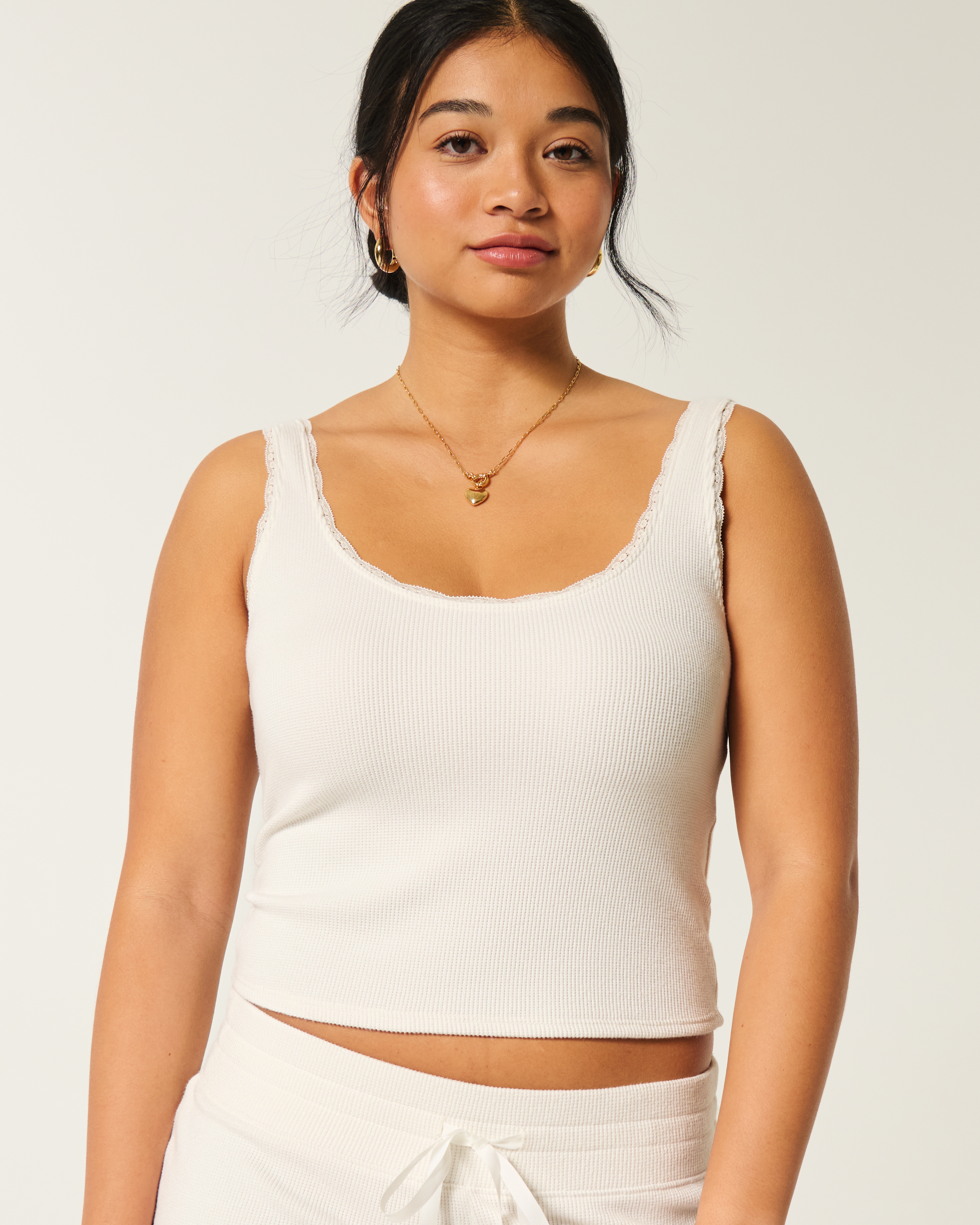 Gilly Hicks Cozy Waffle Lace Trim Tank