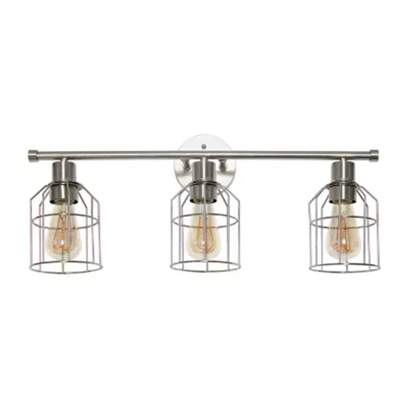 Refresh your space with this clean-lined vanity light. It features a circular back plate and a simple yet sophisticated clean-lined bar in a smooth black finish. This fixture is accented with open wire cage shades for maximum bulb exposure. Hang beautifully not only in your bathroom, but will fit just right near a reading nook, foyer entrance, or space of your choice.**HELPFUL TIP: To get the complete industrial look, we recommend using a decorative Edison/Vintage bulb (not included). **