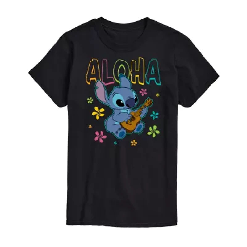 Aloha Stitch Tee Womens Juniors Crew Neck Short Sleeve Regular Fit Lilo & Graphic T-Shirt