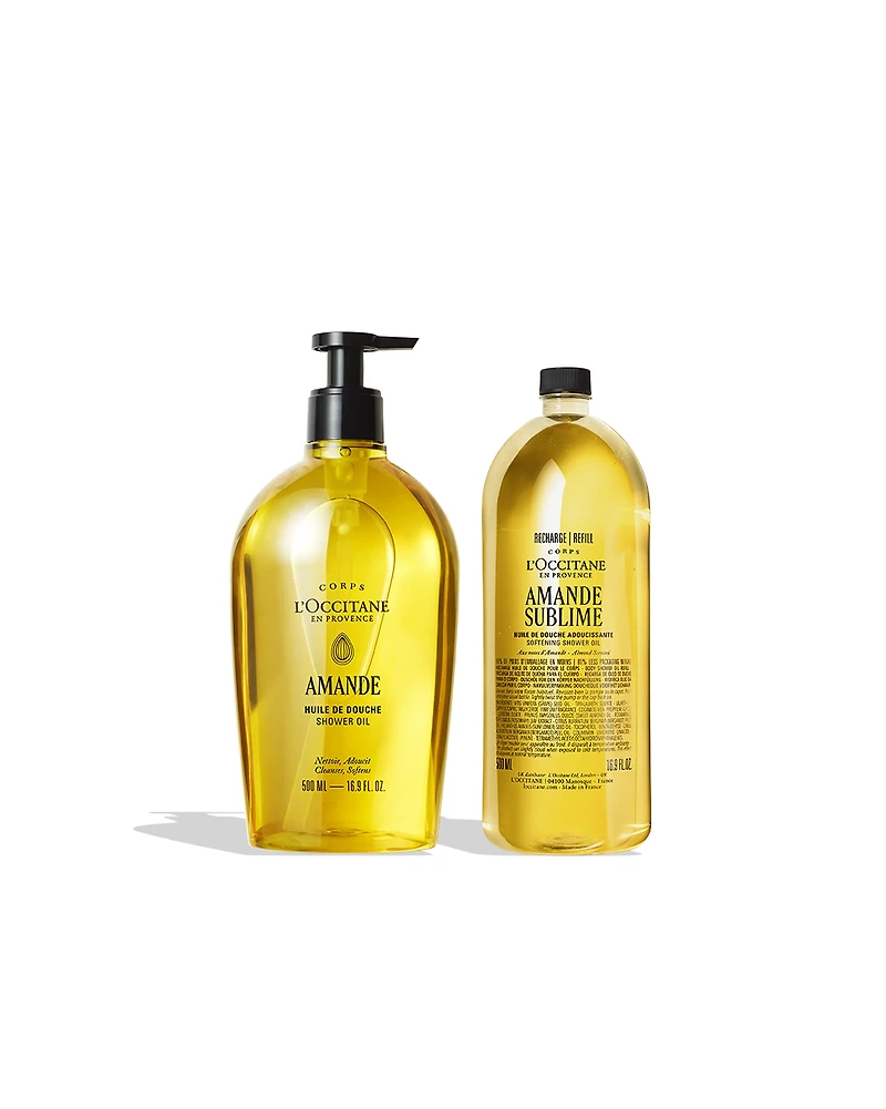 Set Includes: Amande Shower Oil & Refill 500ml/ 16.9 fl oz: Masterfully crafted with 30% of botanical oils, this indulgent shower oil gently cleanses while visibly moisturizing the skin in a single step. Upon contact with water, its rich texture transforms into a delicate, milky lather, leaving your skin feeling soft, supple, and beautifully silky.