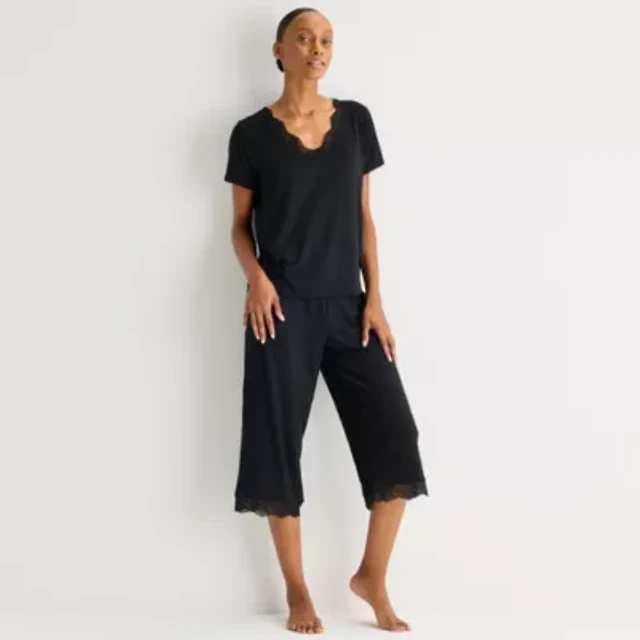 Cuddl Duds Women's Cropped Short-Sleeve Pajama Top and Pants, 2-Piece Set