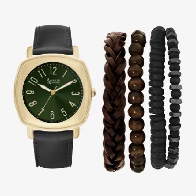 American Exchange Mens Black Leather 5-pc. Watch Boxed Set M0139g-42-X02