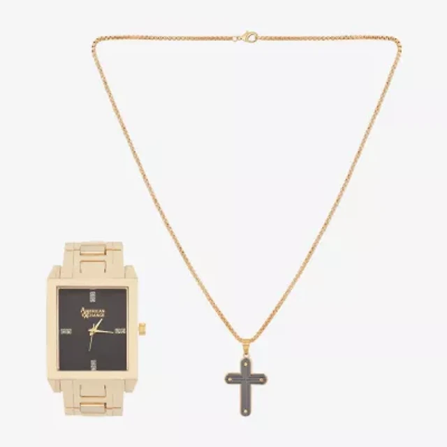 American Exchange Mens Black Leather 4-pc. Watch Boxed Set 8038g-42-G02