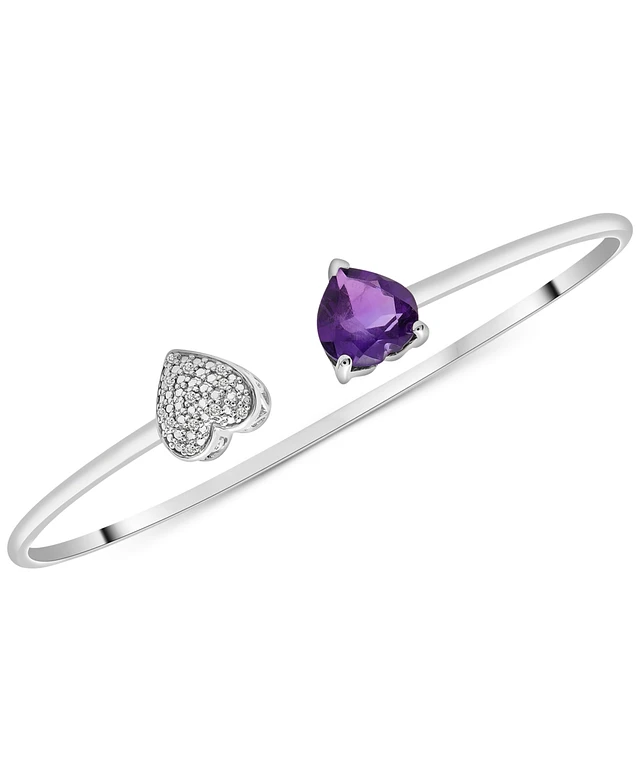 Amethyst (1/10 ct. t.w.) & Diamond Accent Heart Cuff Bangle Bracelet in Sterling Silver