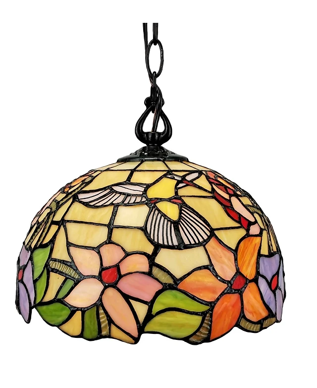 Amora Lighting Tiffany Style Floral, Hummingbird Hanging Lamp