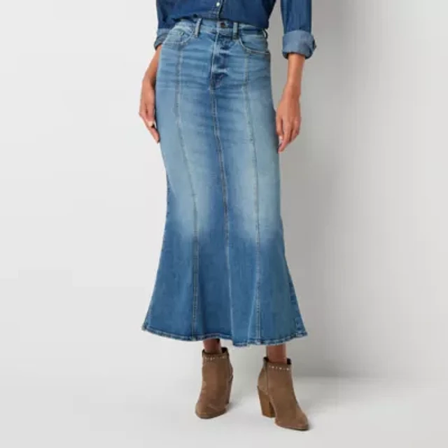 a.n.a Fit And Flare Womens High Rise Long Denim Skirt