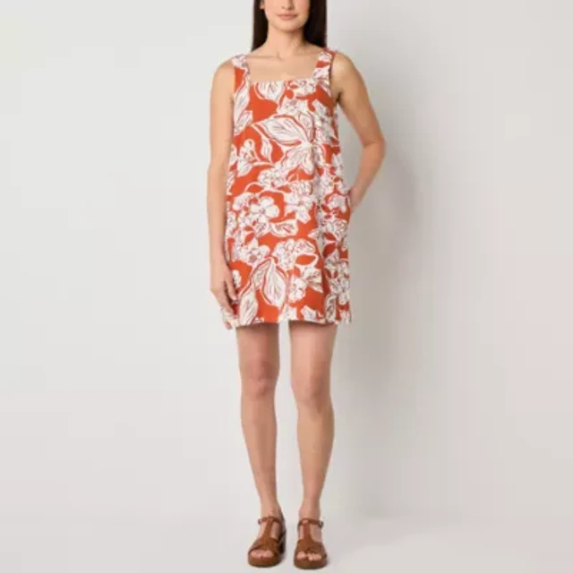 a.n.a Linen Blend Womens Plus Sleeveless Floral A-Line Dress
