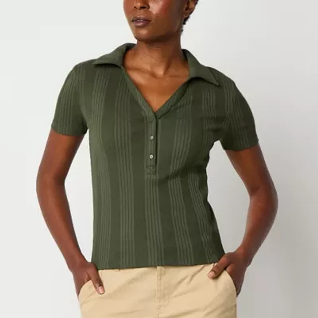 St. John's Bay Womens V Neck Short Sleeve Pullover Polo Sweater