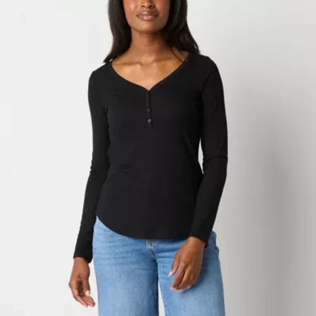 a.n.a Tall Womens Long Sleeve Henley Shirt