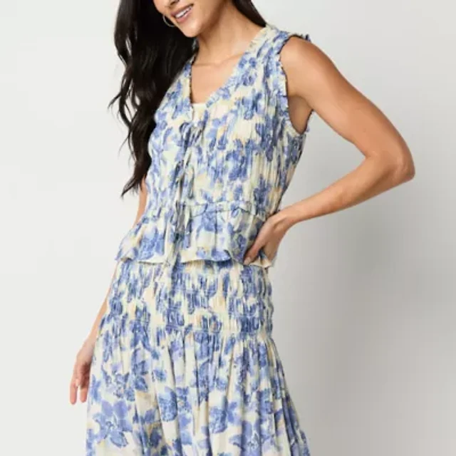 a.n.a Tie Front Womens V Neck Sleeveless Blouse