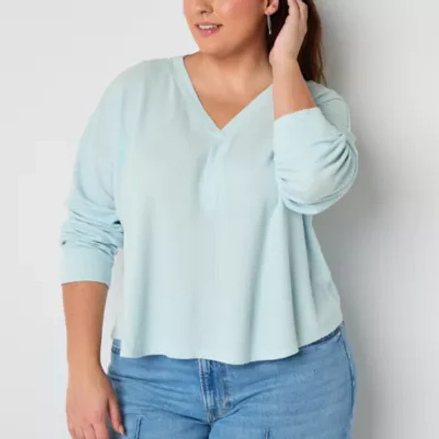 a.n.a Waffle Womens Plus V Neck Long Sleeve T-Shirt
