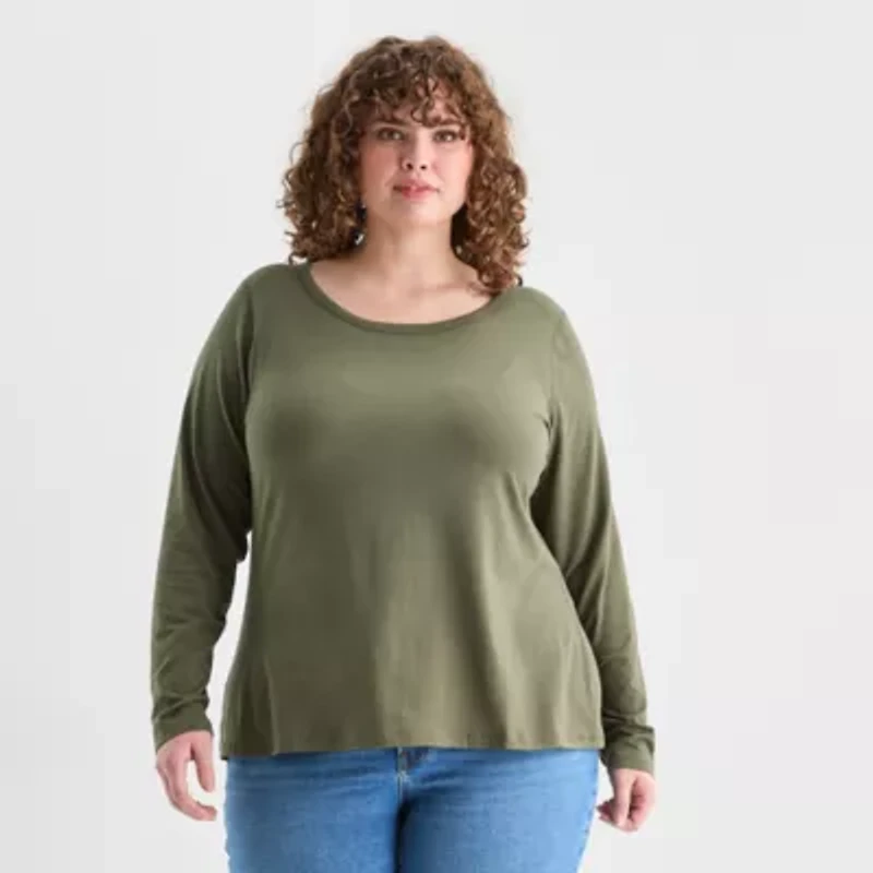 a.n.a Womens Plus Round Neck Long Sleeve Adaptive T-Shirt