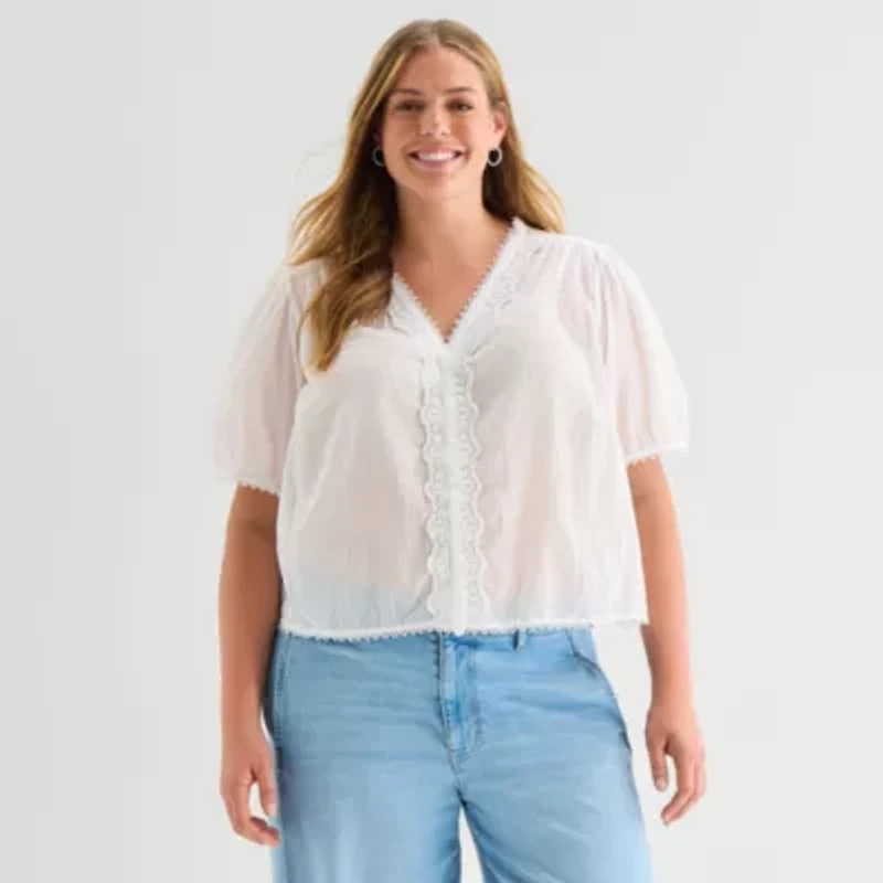 a.n.a Womens Plus V Neck Short Sleeve Blouse