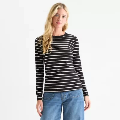 a.n.a Womens Plus Round Neck Long Sleeve T-Shirt