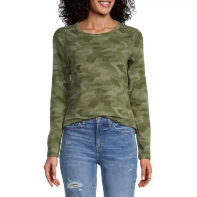 a.n.a Womens Crew Neck Long Sleeve Plus T-Shirt