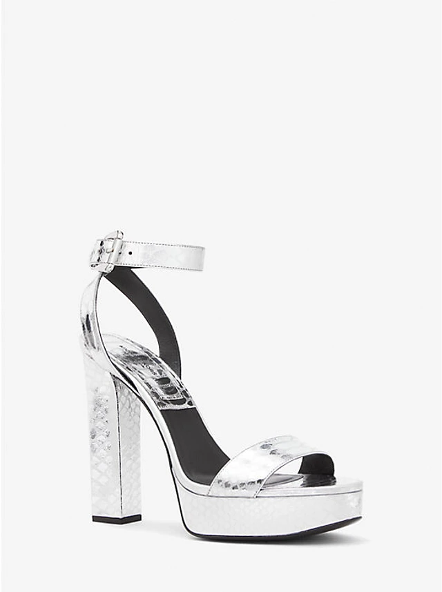 Anabelle Metallic Python Embossed Leather Platform Sandal