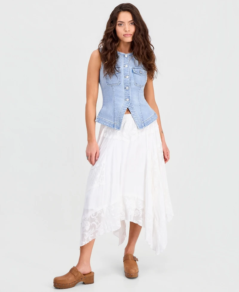 Go a little boho in this petite maxi skirt from And Now This designed with dainty lace details. An asymmetric hem gives it a chic edge.