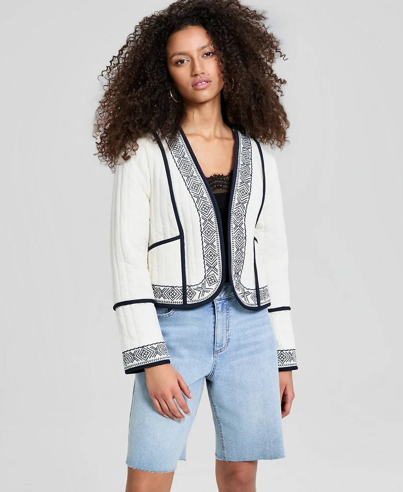 And Now This Women's Embroidered Seamed Cotton Jacket, Macy's Exclusive