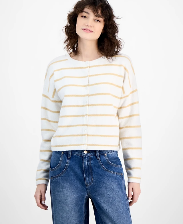 T Tahari Women's Striped-Hem Sleeveless Button Cardigan