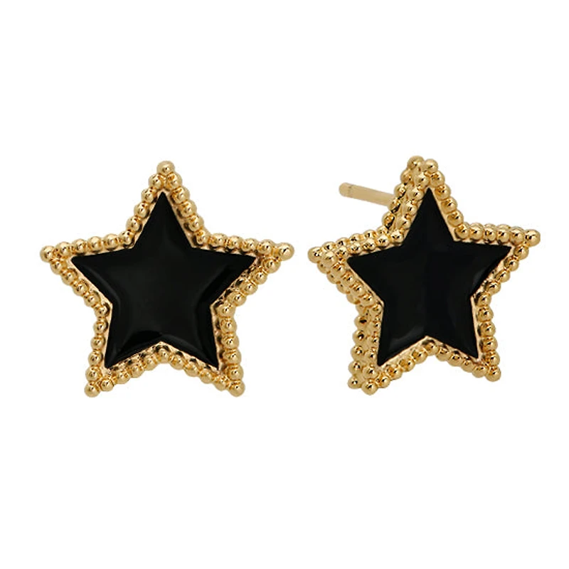 These spectacular enamel star stud earrings are fashioned with hypoallergenic 18k goldfilled, making them a great choice for sensitive ears. The design and craftsmanship make them a timeless classic, perfect for any occasion.
