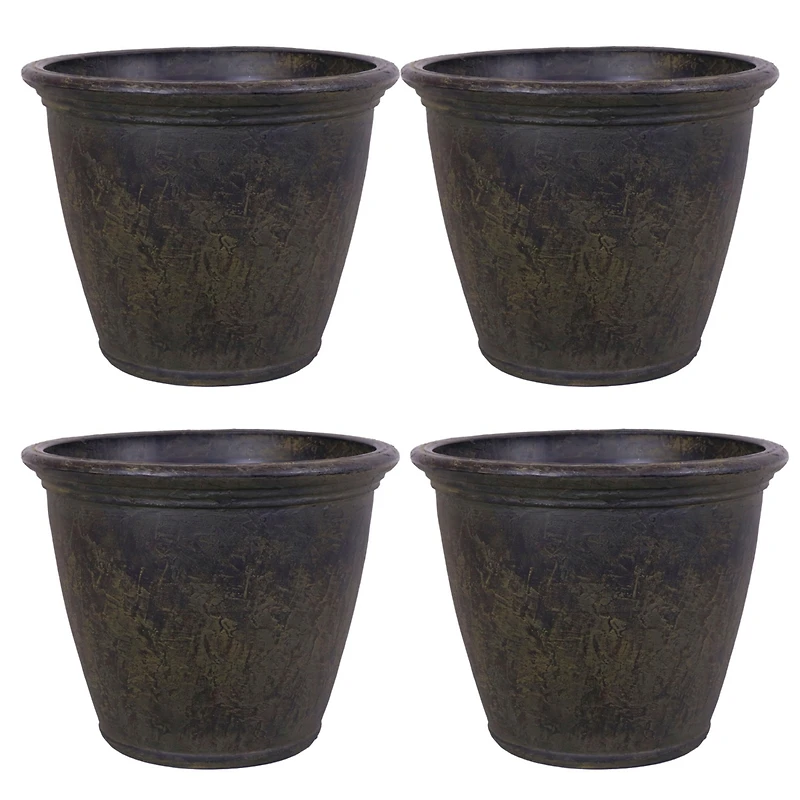 Anjelica Flower Pot Planter - Outdoor/Indoor Unbreakable Double-Walled Polyresin with Uv-Resistant Sable Finish - Set of 4 - Large 24-Inch Diameter