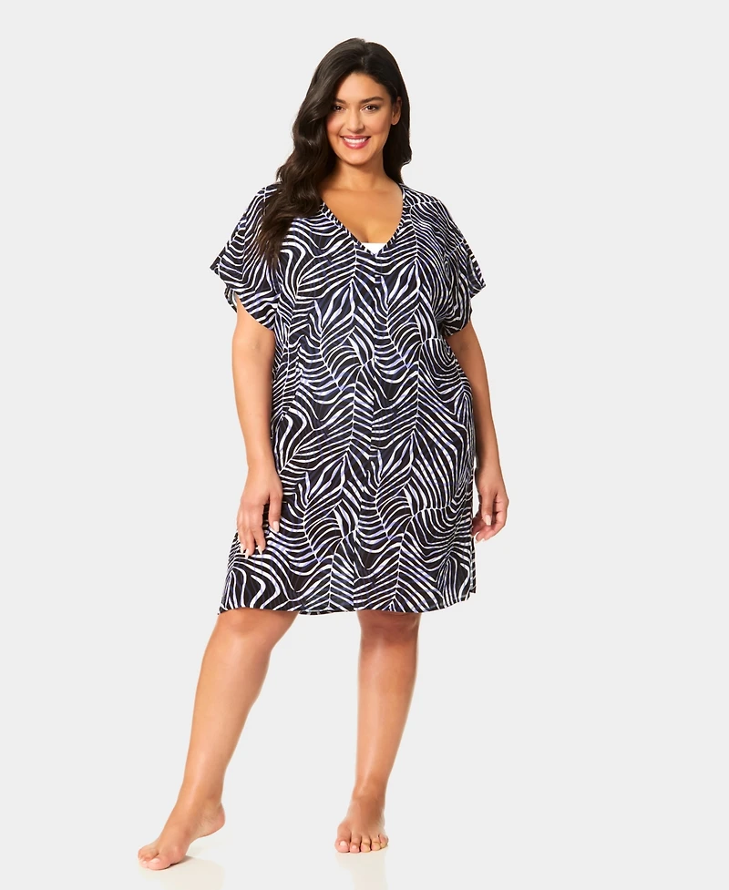 Anne Cole Plus Size Printed V-Neck Swim Tunic Cover Up in San Juan, PR