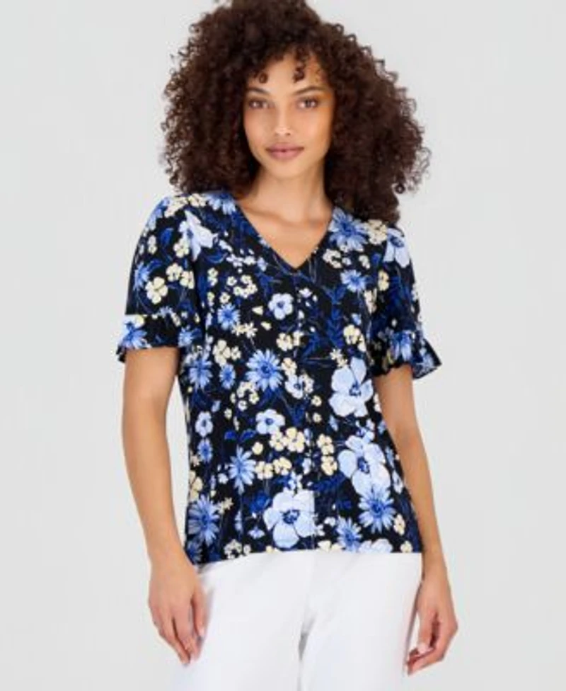 Anne Klein Essentials Petite Printed Ruffle Sleeve Top in San Juan, PR