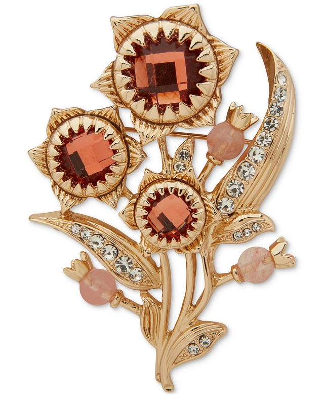 Anne Klein Gold-Tone Pave & Stone Flower Bouquet Pin